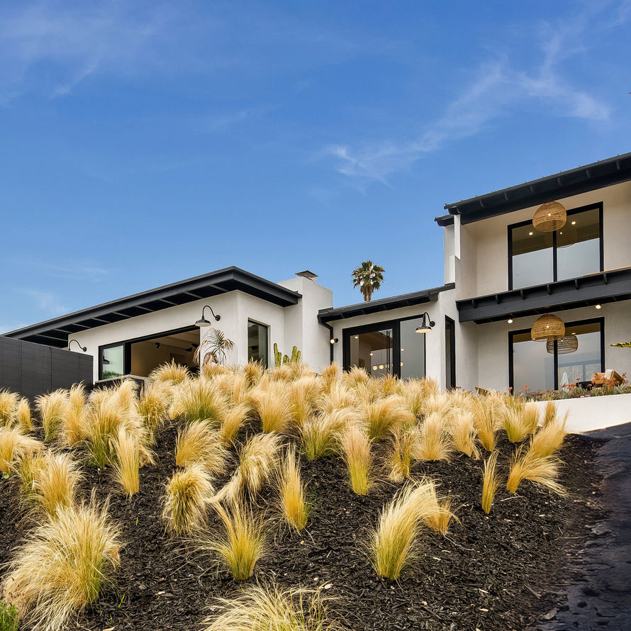 Perched on the hillside, this 5 bedroom, 4 bath home boasts ocean views from the first floor and a hillside vineyard, in the Capri neighborhood of Leucadia.